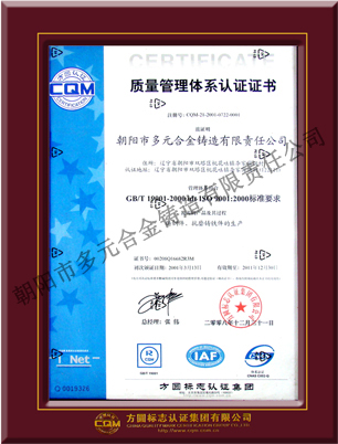 公司嚴格貫徹執(zhí)行ISO9001-2000質量管理體系,加強質量控制,通過設立質量控制點,全員參與,對關鍵工序進行重點管理控制。技術質檢部門嚴格執(zhí)行工序的首檢,巡檢,和完工檢驗,堅決杜絕不合格產品出廠。累累碩果寫下了多元人的成功和自豪,公司產品所獲得的殊榮不勝枚舉, 連續(xù)三年獲得省市誠信單位,遼寧省騰龍企業(yè),高鉻鑄件產品被 評為朝陽市名牌產品,高錳鋼產品榮獲遼寧省名牌產品等殊榮。